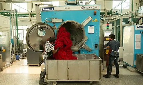 Garments washing or garment wash is done in denim fabrics to produce a color fading effect with or without patchiness, seam puckering, hairiness, crinkles, de-pilling, stabilized dimensions, and soft hand feel. It is one of the most popular processes which is applied in garments to enhance the garments.